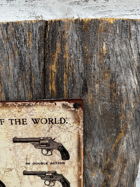Metal Sign of Smith & Wesson Guns Mounted on Barnwood