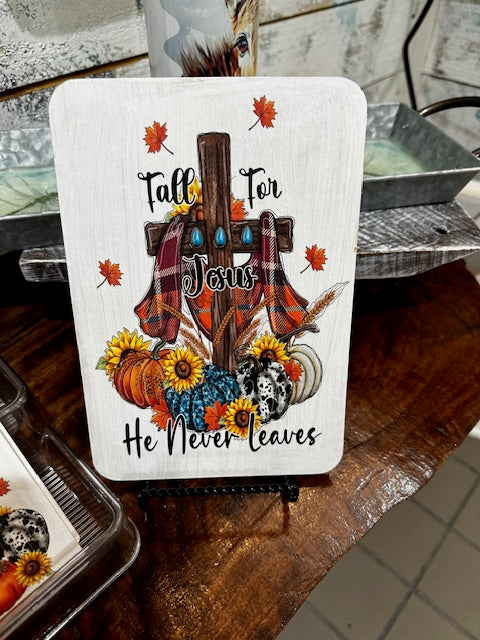 Discover the perfect addition to your kitchen or home with our "Fall for Jesus He Never Leaves" decorative cutting board! Decoration only. Made on a bamboo cutting board with a water resistance coating, this board is both stylish and practical to add to your fall decorations. It's a reminder of faith and warmth. Get yours now! Measures: 6"x 9"
