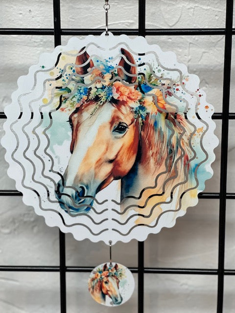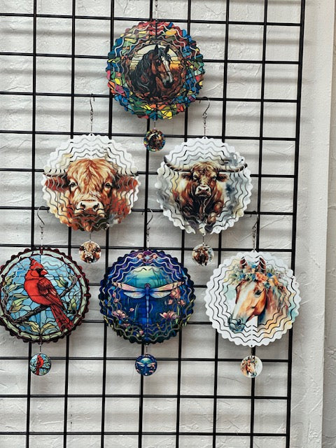 Introducing our Metal 8" Wind Spinners - the perfect addition to any outdoor space. With their beautiful design and matching tail, these spinners are sure to catch the eye and add a touch of elegance to your garden or patio. Made from durable metal and sealed with outside UV protection spray for long-lasting enjoyment.