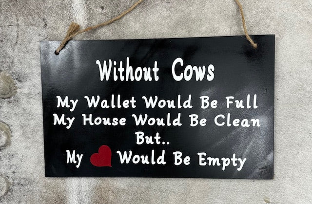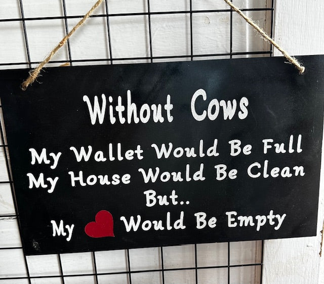 Decorate your home with this hand-painted MDF board sign that boldly declares how your life would be "Without Cows" or "Without Horses". Embrace a minimalist, farmhouse style while simultaneously making a statement. Add character and charm to any room with this unique and quality piece. Painted with durable Rethunk Junk Paint for long lasting durability. 19.5" x 9.5"