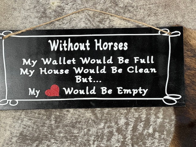 Bring a rustic charm to your home with our Hand-Painted Without Horses Sign! Crafted on durable MDF board, this sign adds a unique touch to any space. The intricate painting breathes life into your decor, making a statement that is sure to capture the imagination. 23" x 9.5